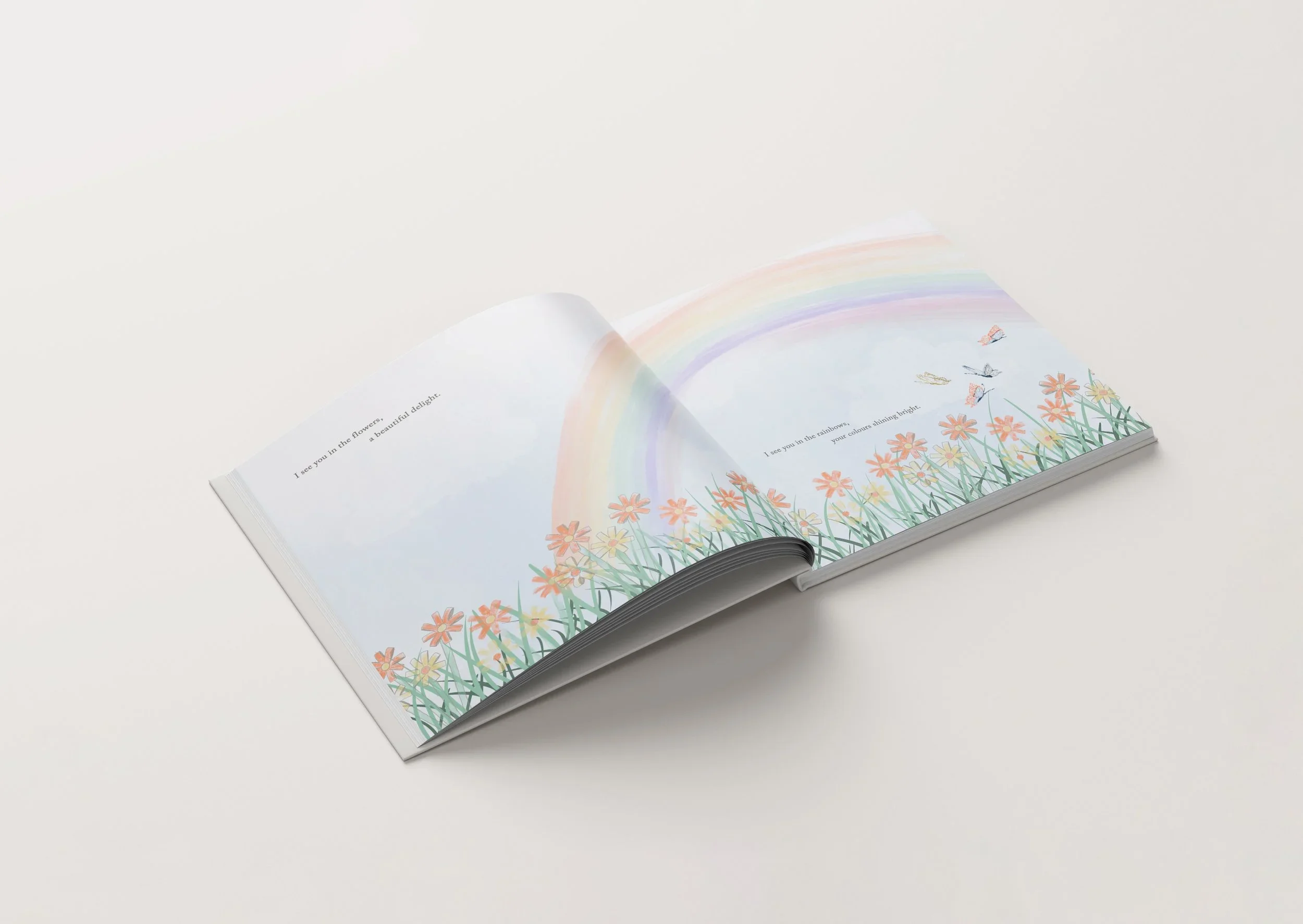 The illustrations in I See You were intentionally soft and emotionally considered, designed to feel comforting and approachable rather than overwhelming. Created using digital watercolour techniques, the artwork carries warmth and fluidity, allowing the visuals to gently support the words rather than compete with them.